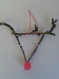 Du brauchst: ein Papprolle (zum Beispiel vom Toilettenpapier), rotes und weißes Papier (oder Stoffreste), etwas Watte, einen schwarzen Stift, Klebstoff, ein Stück Schnur.